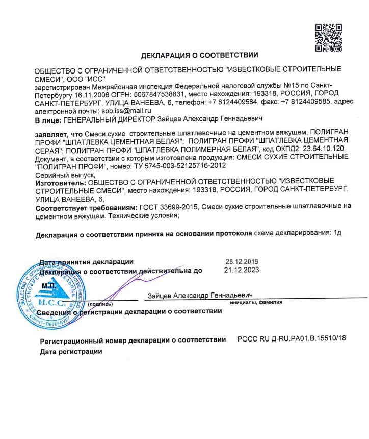Шпатлевка ПОЛИГРАН ПРОФИ является надежным и качественным решением для профессионального и домашнего использования.